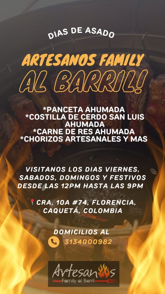 Descubre el sabor auténtico en **ARTESANOS FAMILY AL BARRIL**! Ubicados en la exclusiva zona Rosa de Florencia, Caquetá, te ofrecemos con lo mejor del BRISKET ahumado, estamos mejorando el servicio, viernes sábado y Domingo …