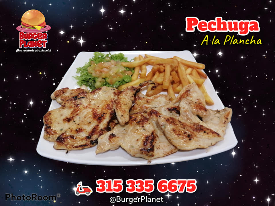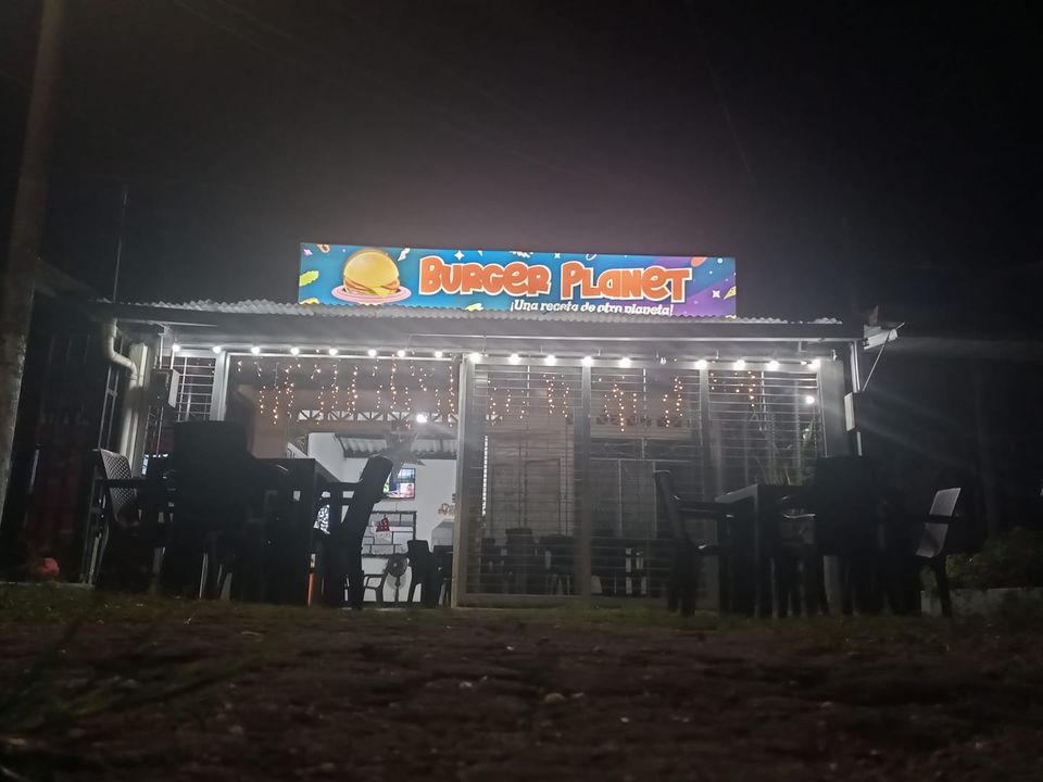 - En #BugerPlanet las hamburguesas son de #CarneTrifásica una combinación de res, pollo y cerdo que delita cualquier paladar con su delicioso sabor, de platano o de pan. Ven y disfruta de #UnaRecetaDeOtroPlaneta