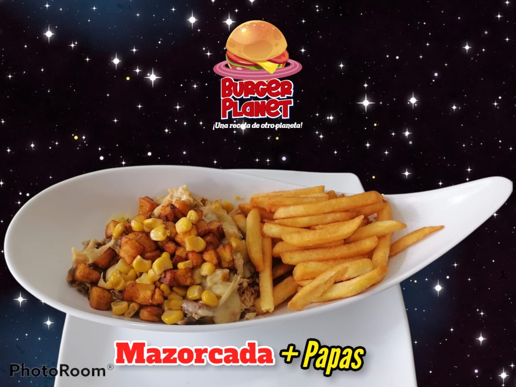 - En #BurgerPlanet la comida es deliciosa, #DeOtroPlaneta y una de las favoritas es #LaMazorcada, una suculenta combinacion de #Pollo y #Res desmechada, con #PapasALaFrancesa queso Gratinado y Maduro en cuadritos #UnaRecetaDeOtroPlaneta